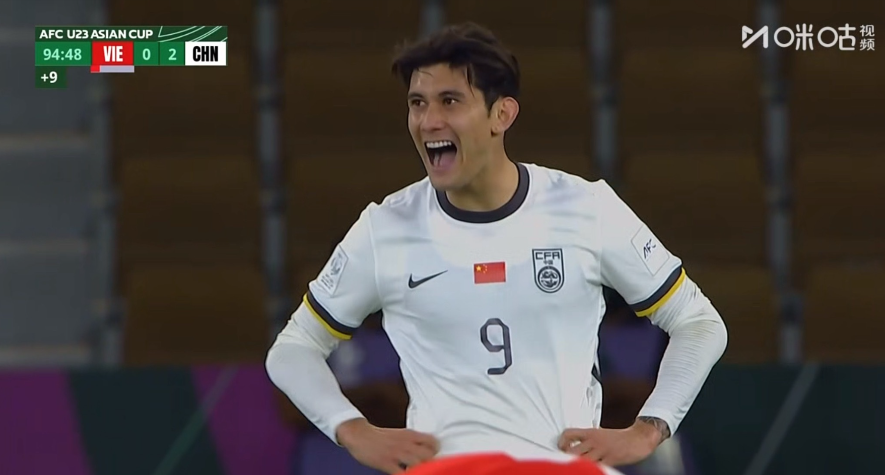 比赛第57分钟,7号向余望转身左脚抽射破门,U23国足2-0领先!第90+9分钟,9号拜合拉木带球突破到左路底线冷静横传,10号王钰栋中路跟进推射得手,随后脱衣庆祝染黄,U23国足3-0越南!