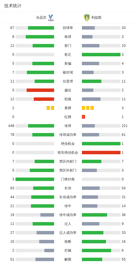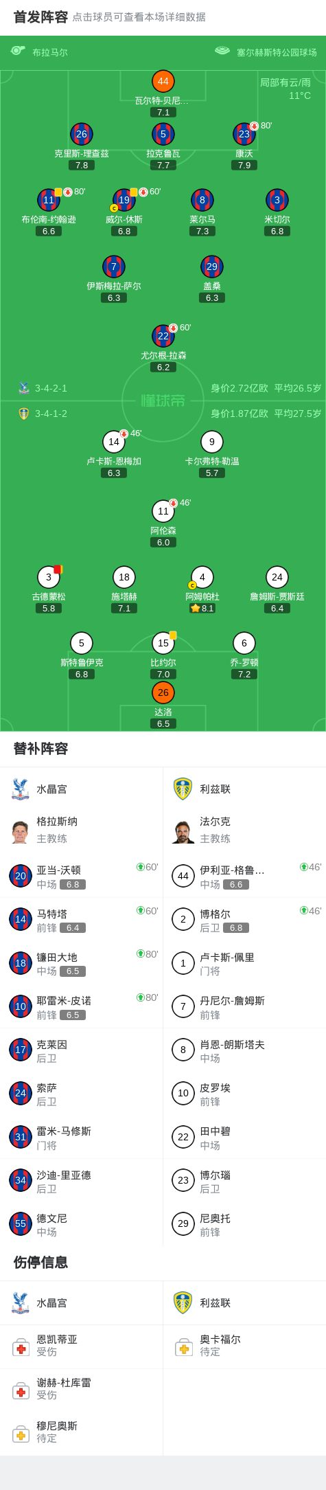 北京时间3月15日英超联赛第30轮,水晶宫主场对阵利兹联。威尔-休斯送点,勒温主罚点球打偏,古德蒙松两黄变一红被罚下,水晶宫进球被吹越位。最终,水晶宫主场0-0战平利兹联。